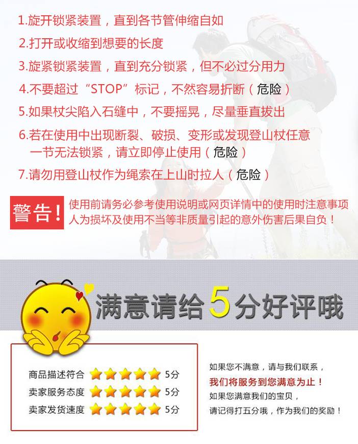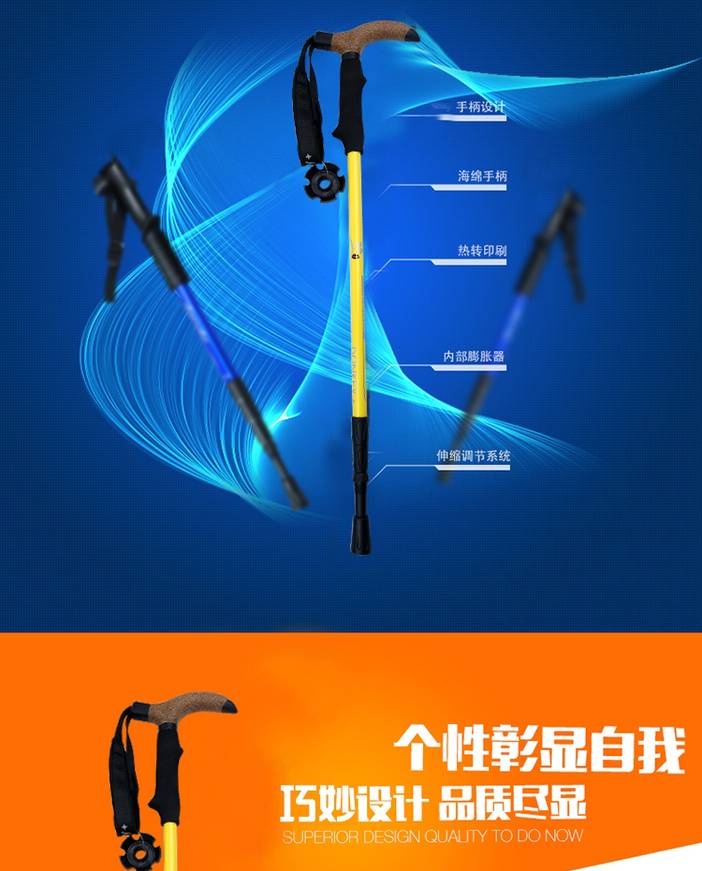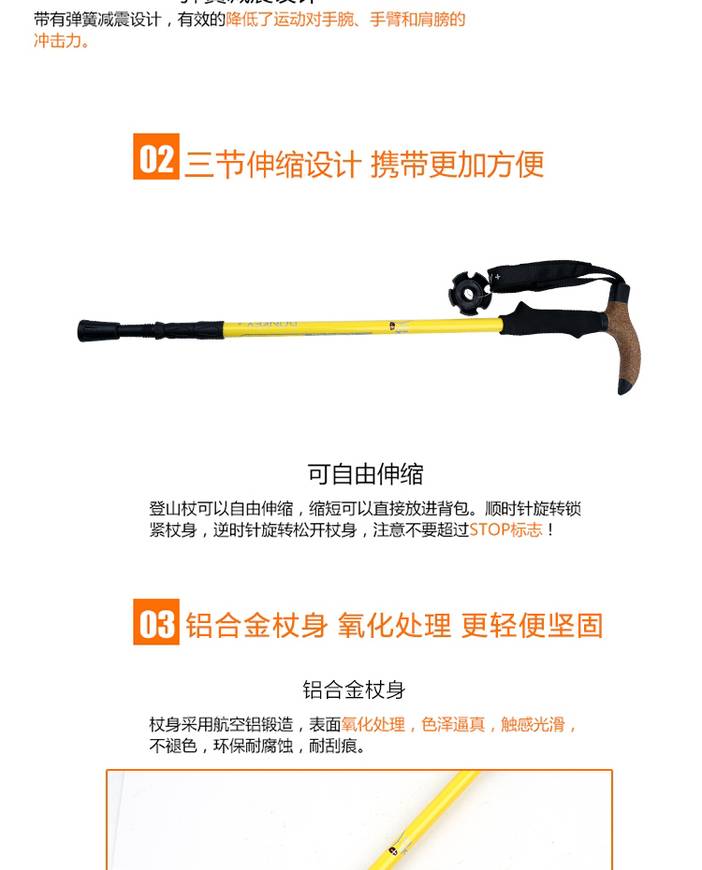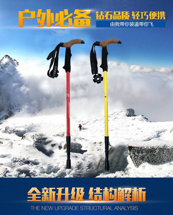 美途户外自主设计-驴加铝合金外锁3节伸缩登山杖