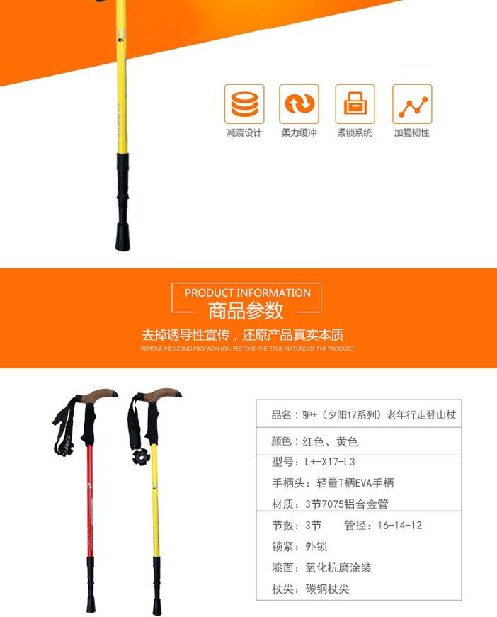 美途户外自主设计-驴加铝合金内锁3节T柄伸缩老年行走杖